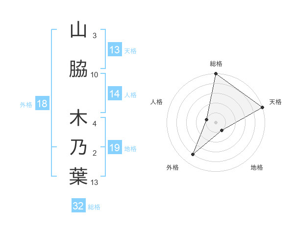 山脇 木乃葉さんを姓名の画数から五運を鑑定
