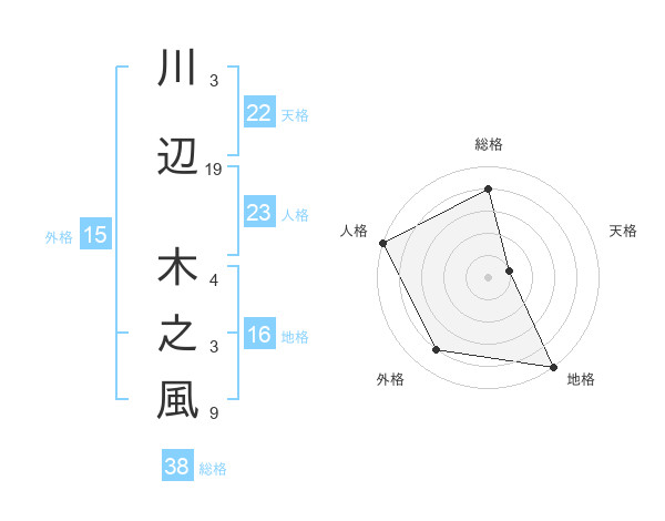 川辺 木之風さんの総格は38画の4点!