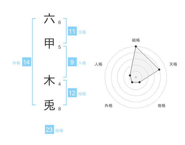六甲 木兎さんの総格は23画の5点!
