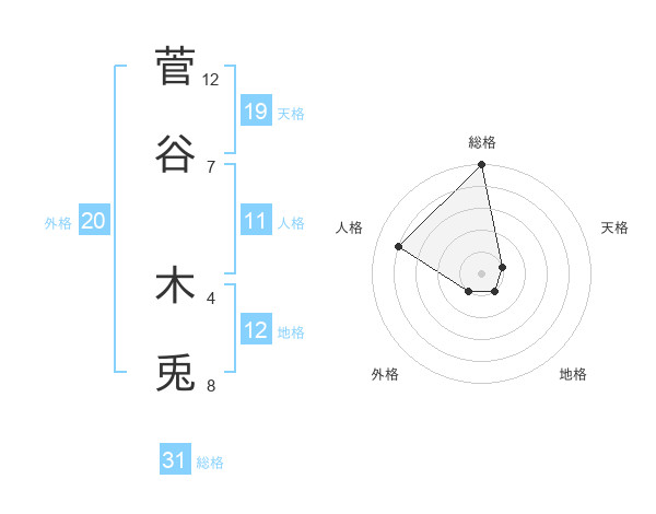 菅谷 木兎さんの総格は31画の5点!