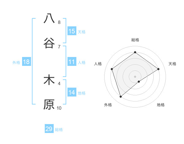 八谷 木原さんの総格は29画の4点!
