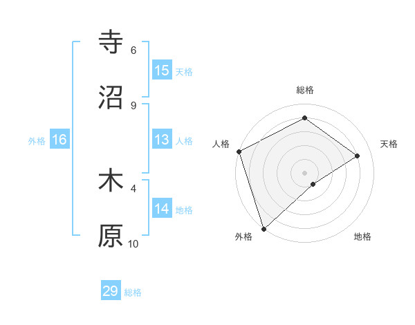 寺沼 木原さんの総格は29画の4点!
