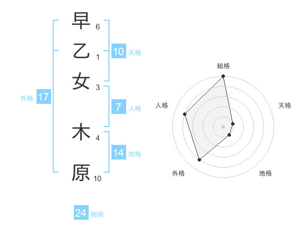 早乙女 木原さんを姓名の画数から五運を鑑定