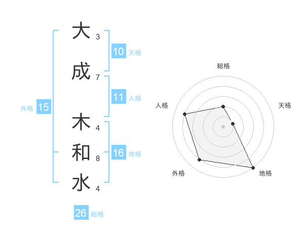 大成 木和水さんの総格は26画の2点!