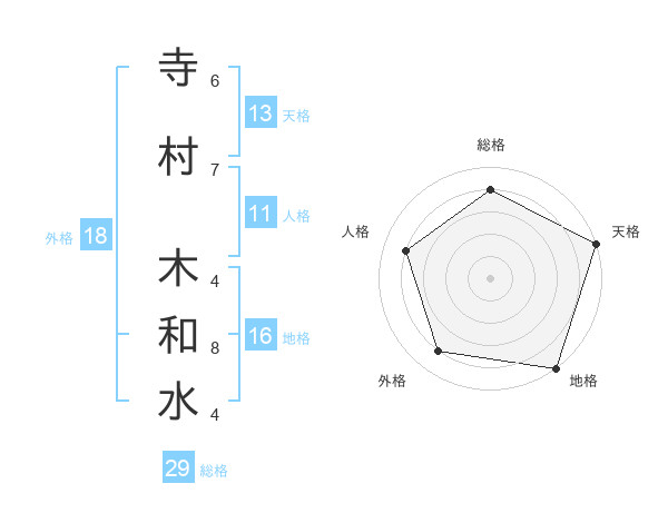 寺村 木和水さんを姓名の画数から五運を鑑定