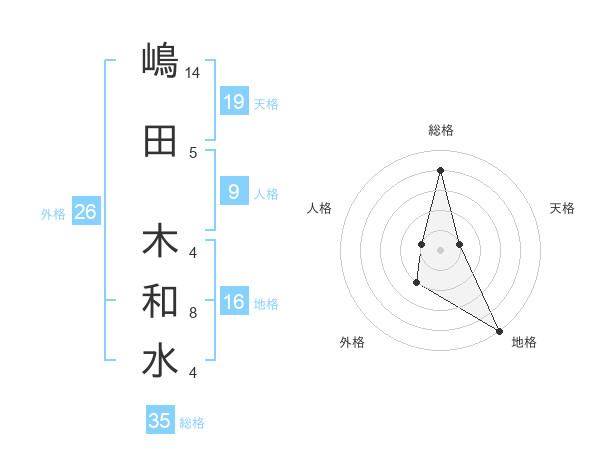 嶋田 木和水さんの総格は35画の4点!