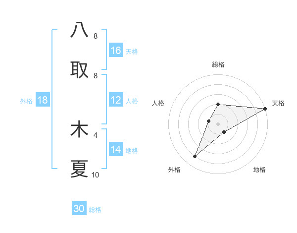 八取 木夏さんの総格は30画の2点!