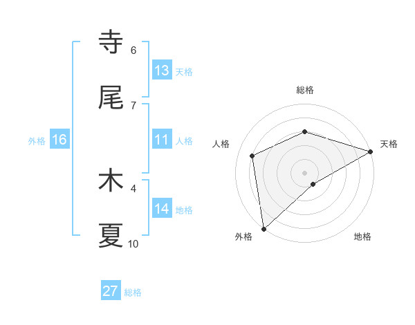 寺尾 木夏さんを姓名の画数から五運を鑑定