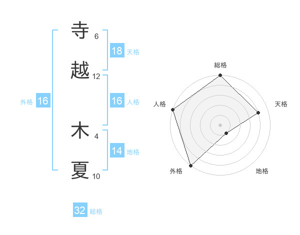 寺越 木夏さんを姓名の画数から五運を鑑定