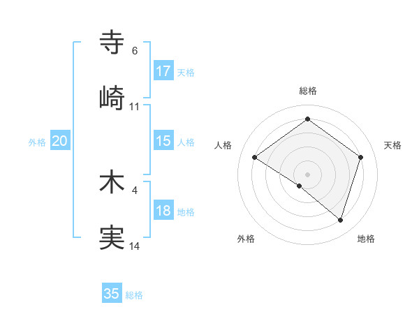 寺崎 木実さんを姓名の画数から五運を鑑定