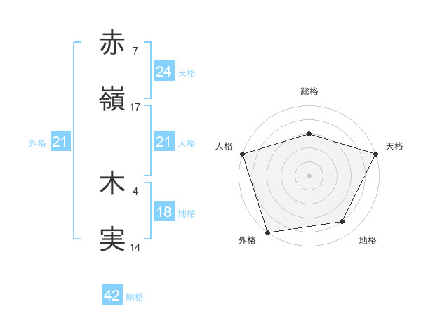 赤嶺 木実さんを姓名の画数から五運を鑑定