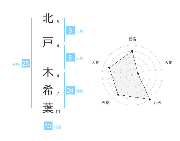 北戸 木希葉さんを姓名の画数から五運を鑑定
