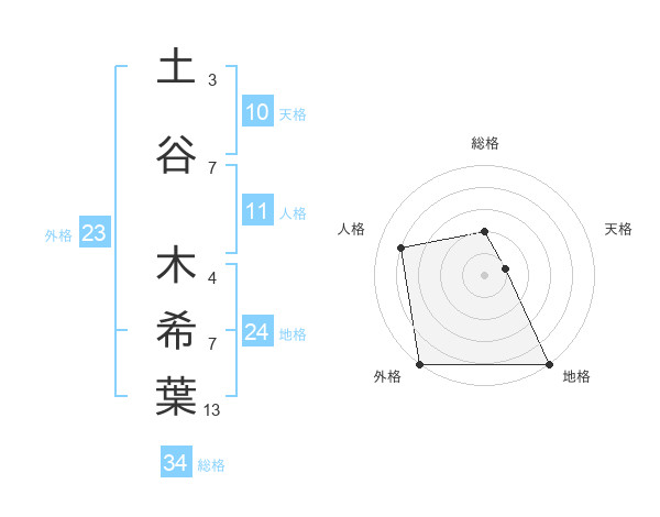 土谷 木希葉さんを姓名の画数から五運を鑑定