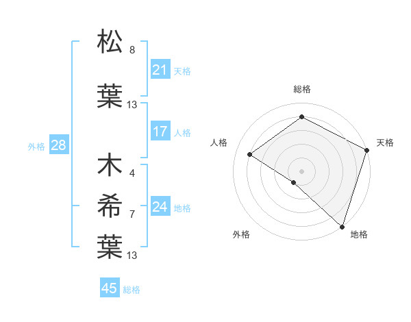 松葉 木希葉さんを姓名の画数から五運を鑑定