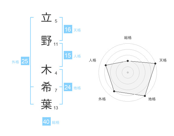 立野 木希葉さんを姓名の画数から五運を鑑定