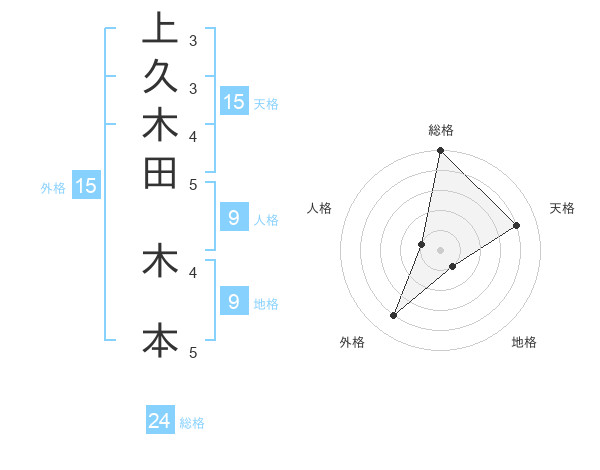 上久木田 木本さんの総格は24画の5点!