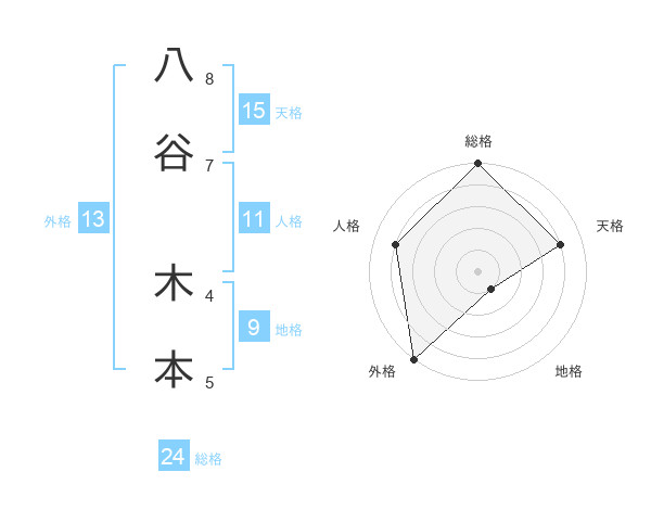八谷 木本さんの総格は24画の5点!