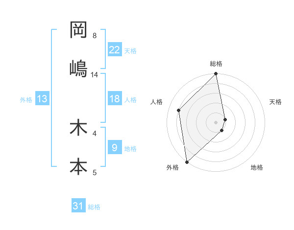 岡嶋 木本さんの総格は31画の5点!