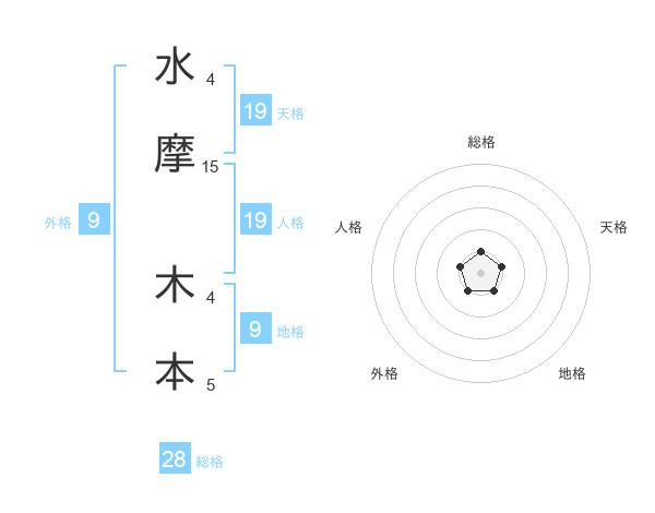 水摩 木本さんの総格は28画の1点!