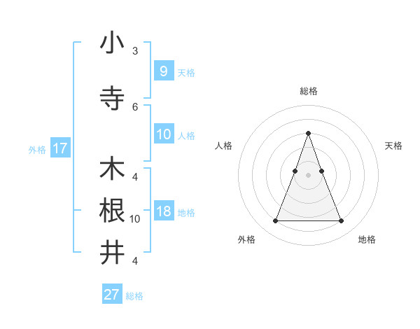 小寺 木根井さんの総格は27画の3点!