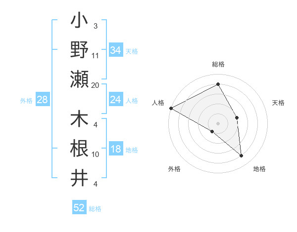 小野瀬 木根井さんを姓名の画数から五運を鑑定