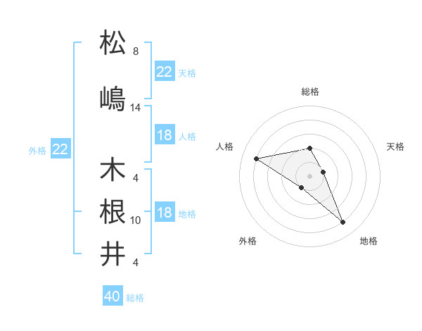 松嶋 木根井さんの地格は18画の4点!