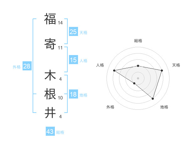 福寄 木根井さんを姓名の画数から五運を鑑定