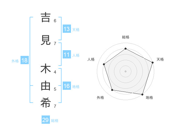 吉見 木由希さんを姓名の画数から五運を鑑定