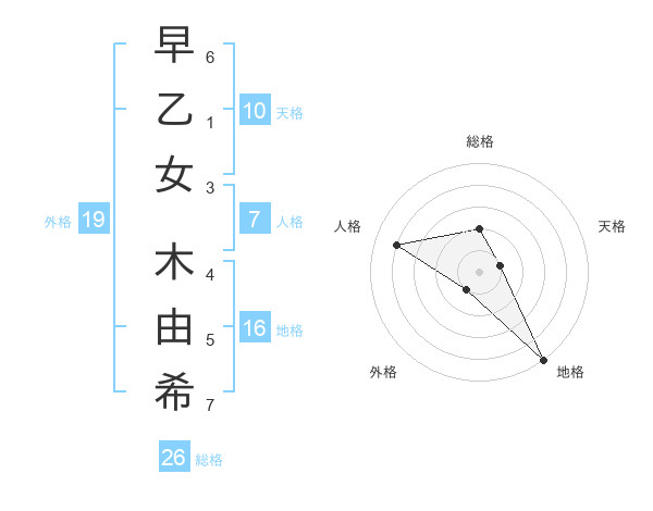 早乙女 木由希さんの総格は26画の2点!