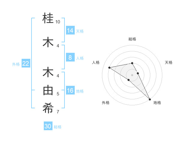 桂木 木由希さんを姓名の画数から五運を鑑定