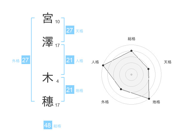 宮澤 木穗さんの総格は48画の4点!