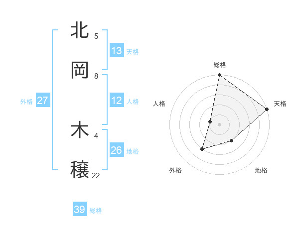 北岡 木穣さんを姓名の画数から五運を鑑定