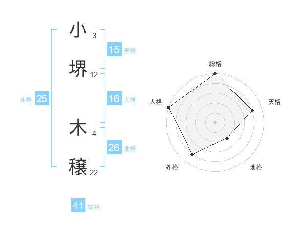 小堺 木穣さんの天格は15画の4点!