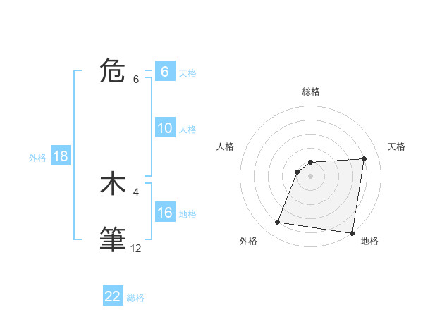 危 木筆さんの総格は22画の1点!