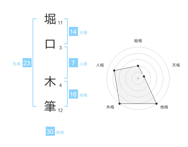 堀口 木筆さんの外格は23画の5点!