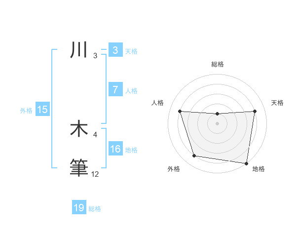 川 木筆さんの総格は19画の1点!