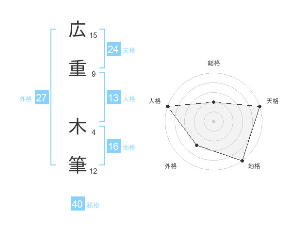 広重 木筆さんの総格は40画の2点!