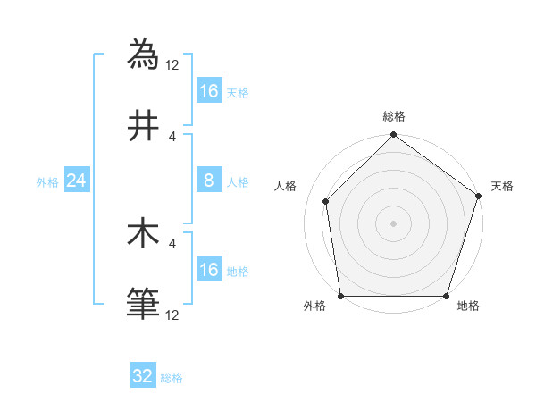 為井 木筆さんの天格は16画の5点!