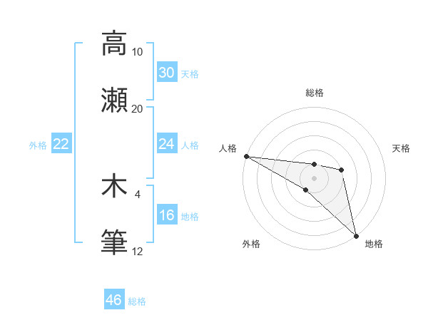 高瀬 木筆さんの総格は46画の1点!