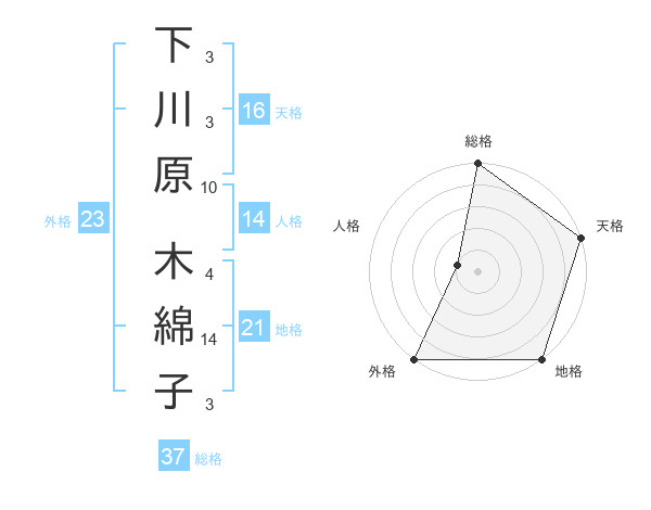 下川原 木綿子さんを姓名の画数から五運を鑑定