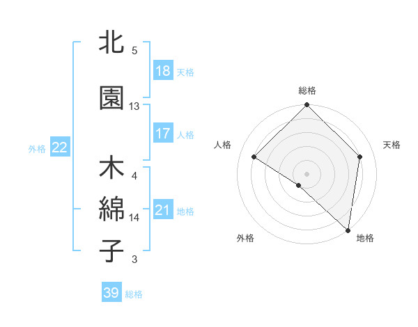 北園 木綿子さんを姓名の画数から五運を鑑定