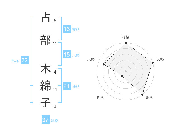 占部 木綿子さんの総格は37画の5点