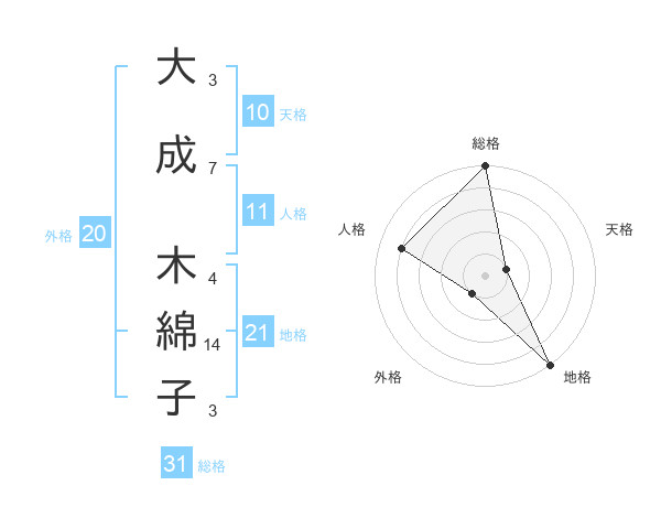 大成 木綿子さんの地格は21画の5点!