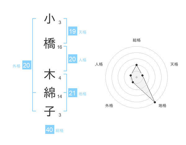 小橋 木綿子さんの総格は40画の2点