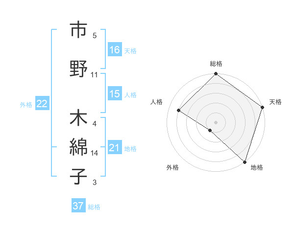 市野 木綿子さんを姓名の画数から五運を鑑定