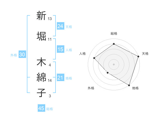 新堀 木綿子さんの天格は24画の5点!