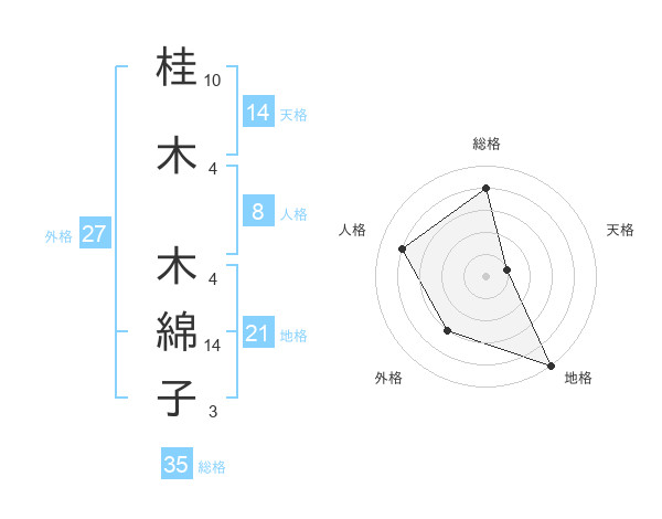 桂木 木綿子さんを姓名の画数から五運を鑑定