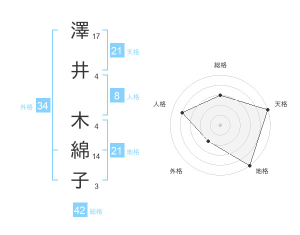 澤井 木綿子さんの天格は21画の5点
