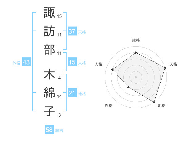 諏訪部 木綿子さんを姓名の画数から五運を鑑定