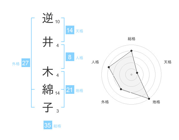 逆井 木綿子さんを姓名の画数から五運を鑑定